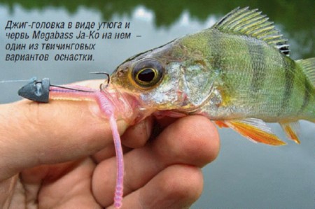 Рывковая анимация силиконовой приманки очень похожа на рывковую проводку воблеров. Применяя легкую джиг-головку, я могу твичить в толще воды, собирая окуня, стоящего вполводы, а с тяжелой – твичить, иногда контактируя с дном. Любой раз приходится подбирать количество, силу, амплитуду рывков. самый активный окунь садится и на рывках, но чаще на протяжении паузы между сериями рывков. Создается чувство, что рыскания приманки раззадоривают окуня, а в паузе он решается на атаку. Величина разброса из стороны в сторону зависит от конкретной модели джиг-головки и применяемой приманки. Можно использовать и классические твистеры, и виброхвосты, но существенно лучше применять червей или слагов, по причине того, что с ними отклонения в стороны большие. приманки и живые насадки Из приманок у меня в фаворитах Tsunekichi Mebaru Worm, Megabass Ja-Ko, Ima Shirasnake и Ima Trilobite.