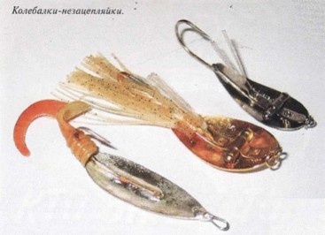 Но я предлагаю начать с варианта без данной «пагубной заразы». Итак, перед вами мелководье, заросшее рдестом, или роголистником, или кувшинками, или, как довольно часто это не редкость, всем этим совместно забранным… Для активного поиска в таких местах стоянки шуки оптимальнее подходят два вида приманок: незацепляюшиеся колебалки с одинарным крючком и плавающие глиссеры. Аналогичных колебалок на прилавках отечественных русских магазинов достаточно.
